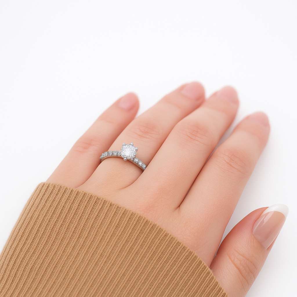 - The set features elegant Invisible Prong diamonds, with dazzling diamond accents decorating the halo and band of the engagement ring.