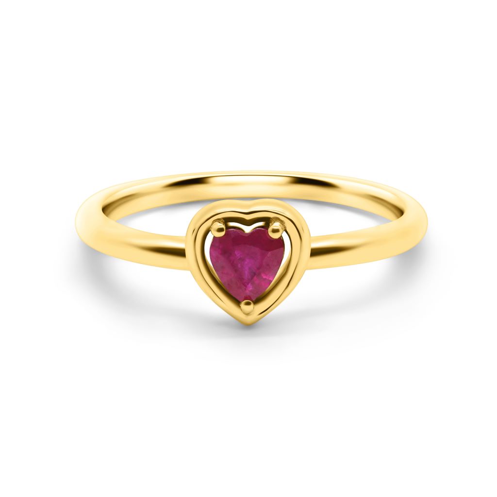 Gold Embraced Heart Ring - Ruby
