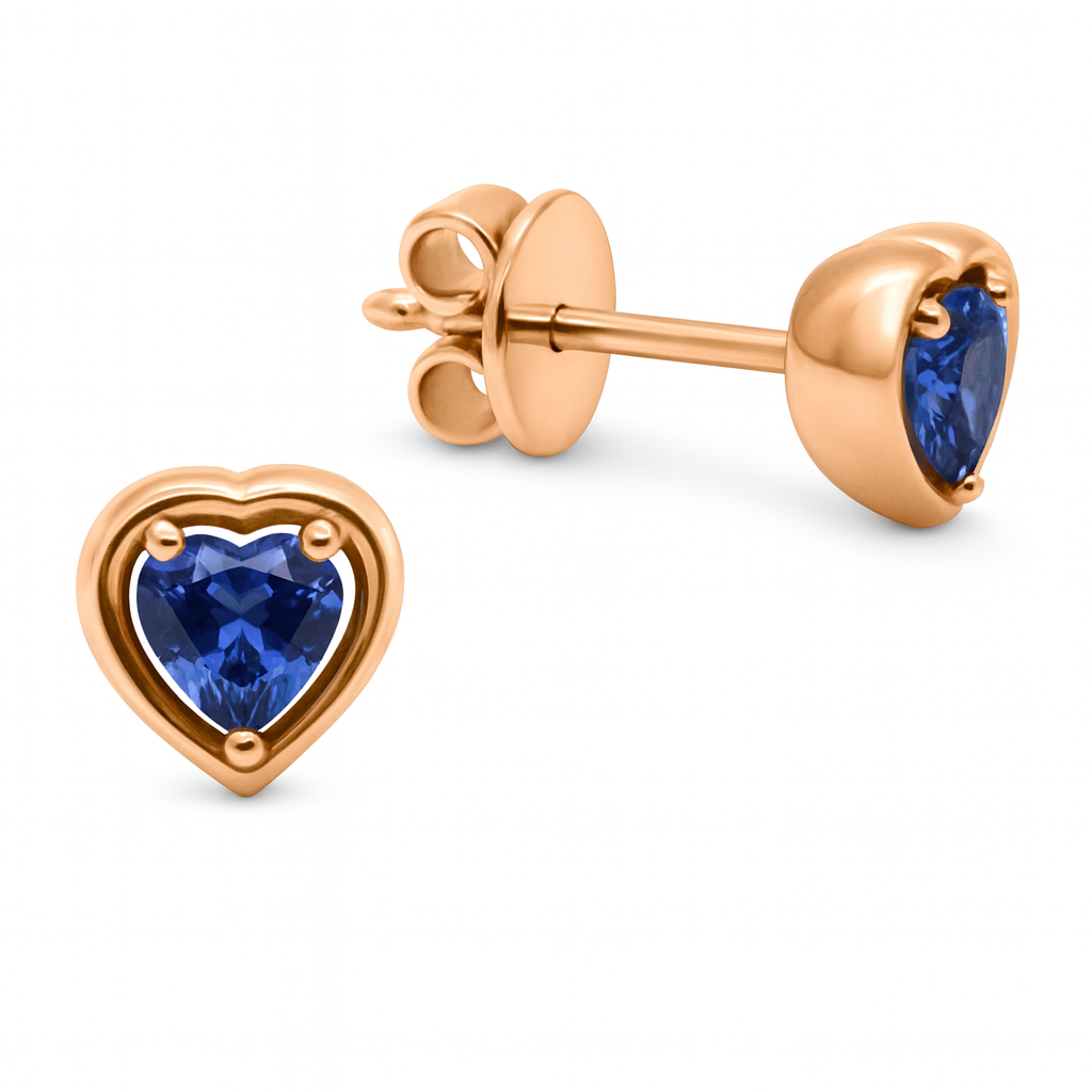 Gold Embraced Heart Earrings - Sapphire