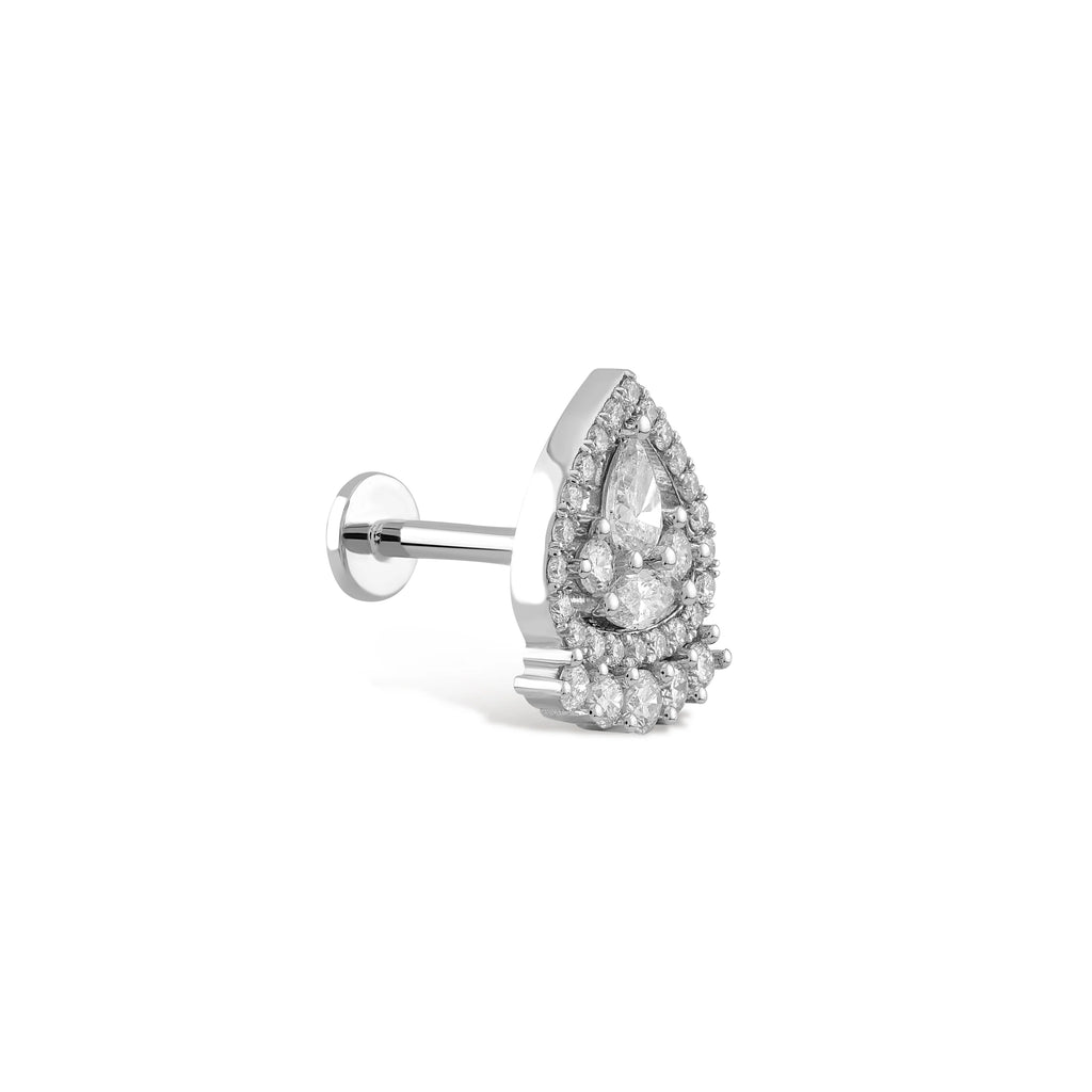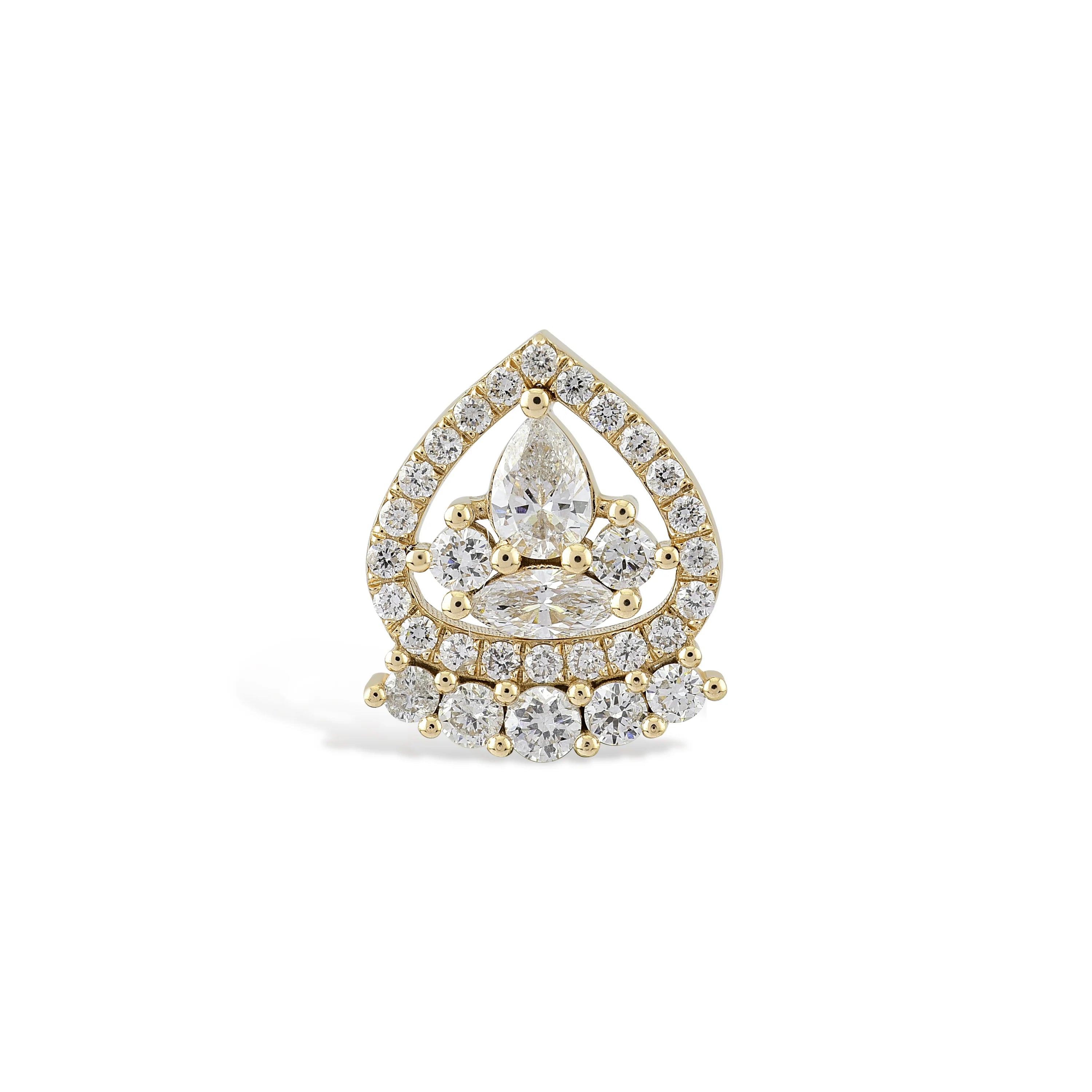The Line of Marquise Piercing is crafted in solid 14k gold, with a stud length of 6.5mm and 1.2mm thickness. The internally threaded stud and secure back allows for a comfortable and strong piercing. Perfect for a statement piece or everyday wear.