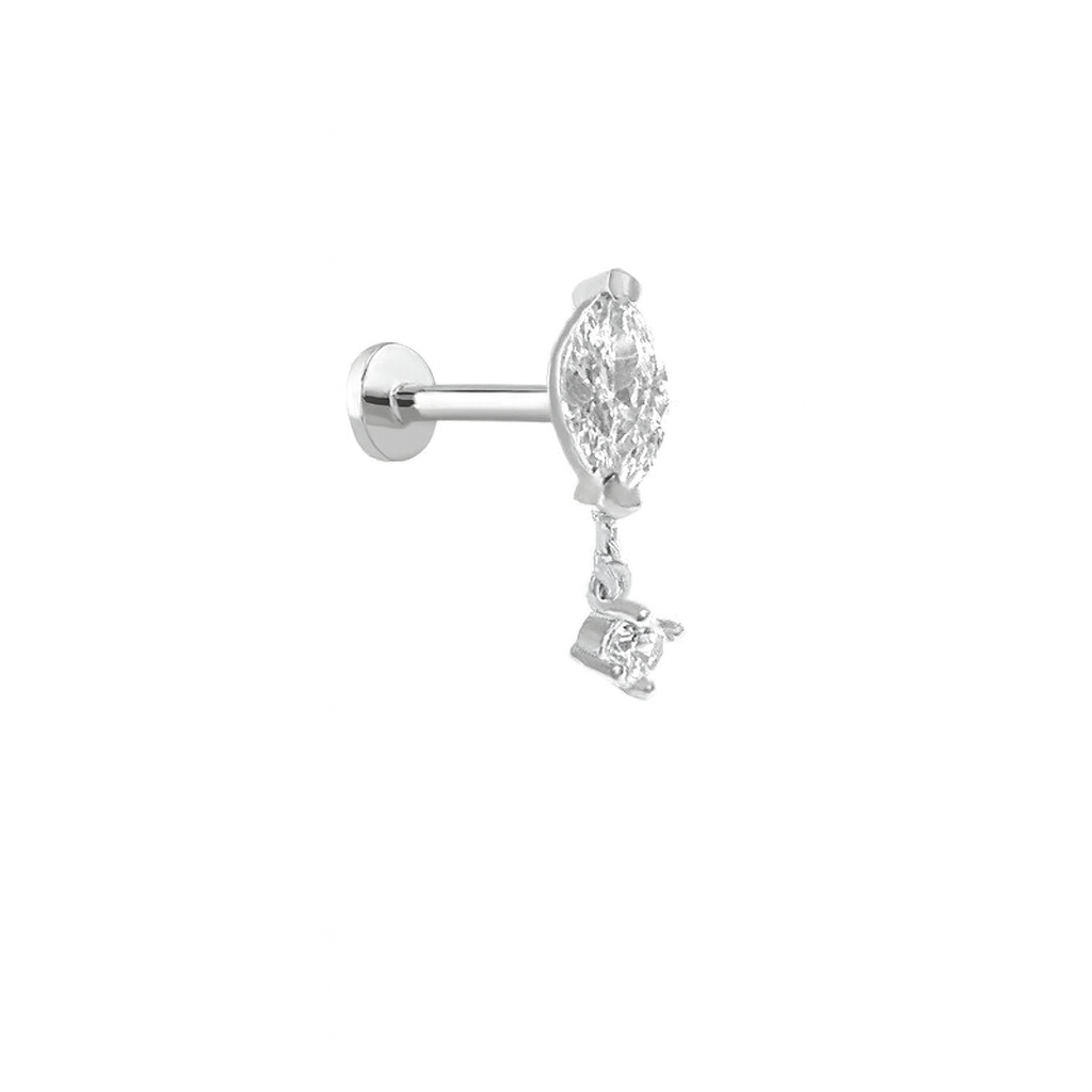 The Marquise & Round Piercing is crafted in solid 14k gold, with a stud length of 6.5mm and 1.2mm thickness. The internally threaded stud and secure back allows for a comfortable and strong piercing. Perfect for a statement piece or everyday wear.
