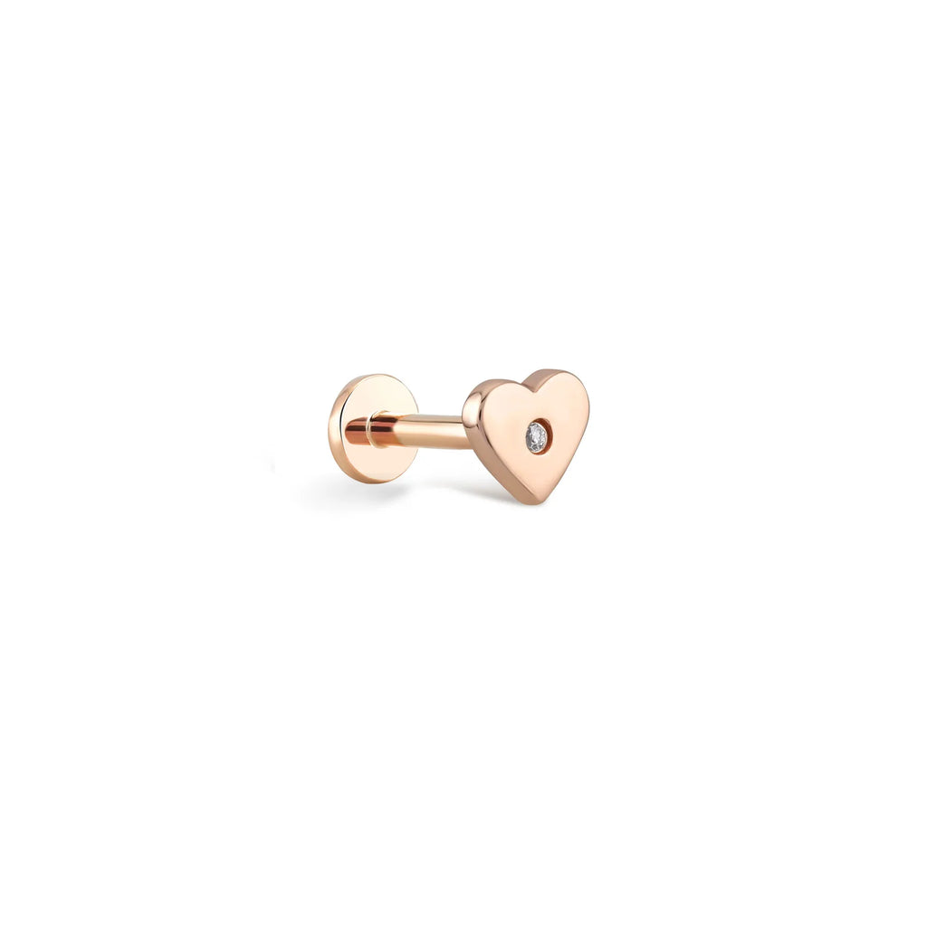 The Midheart Flat Back Stud is crafted in solid 14k gold, with a stud length of 6.5mm and 1.2mm thickness. The internally threaded stud and secure back allows for a comfortable and strong piercing. Perfect for a statement piece or everyday wear.