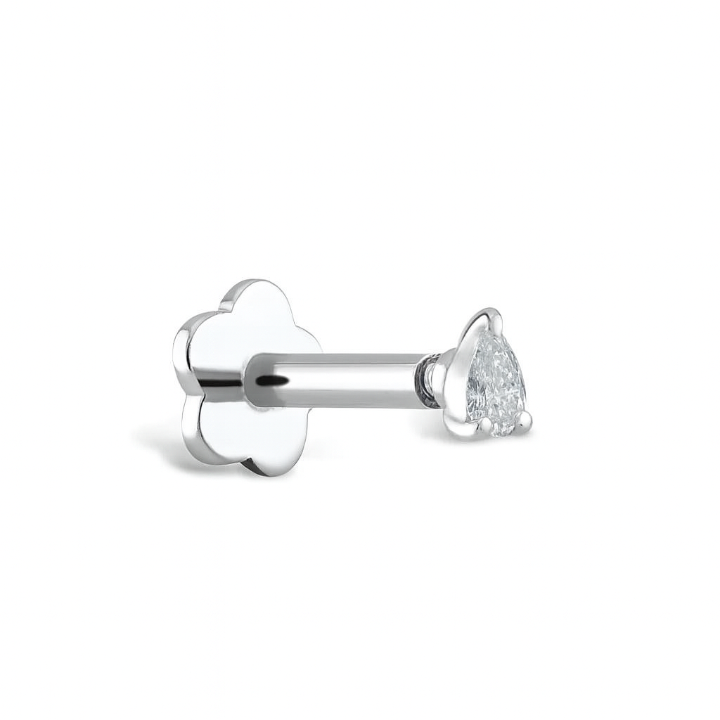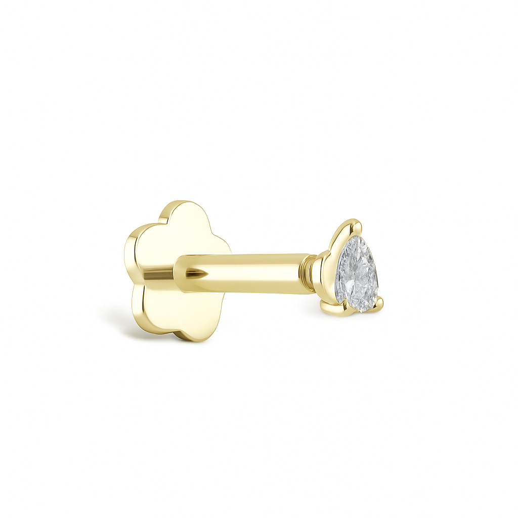 The Curve Diamond Fall Flat Back Stud is crafted in solid 14k gold, with a stud length of 6.5mm and 1.2mm thickness. The internally threaded stud and secure back allows for a comfortable and strong piercing. Perfect for a statement piece or everyday wear.