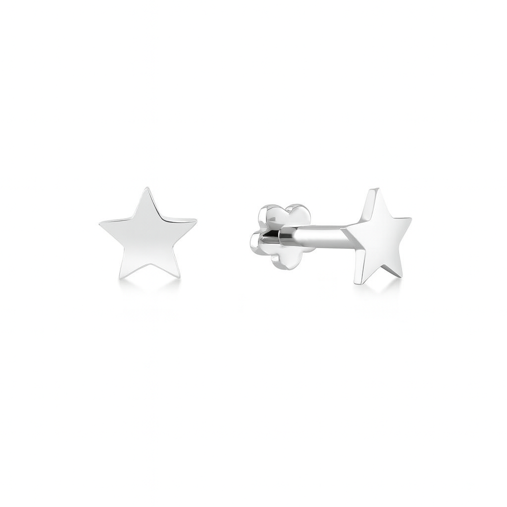 The Star Piercing is crafted in solid 14k gold, with a stud length of 6.5mm and 1.25mm thickness. The internally threaded stud and secure back allows for a comfortable and strong piercing. Perfect for a statement piece or everyday wear.