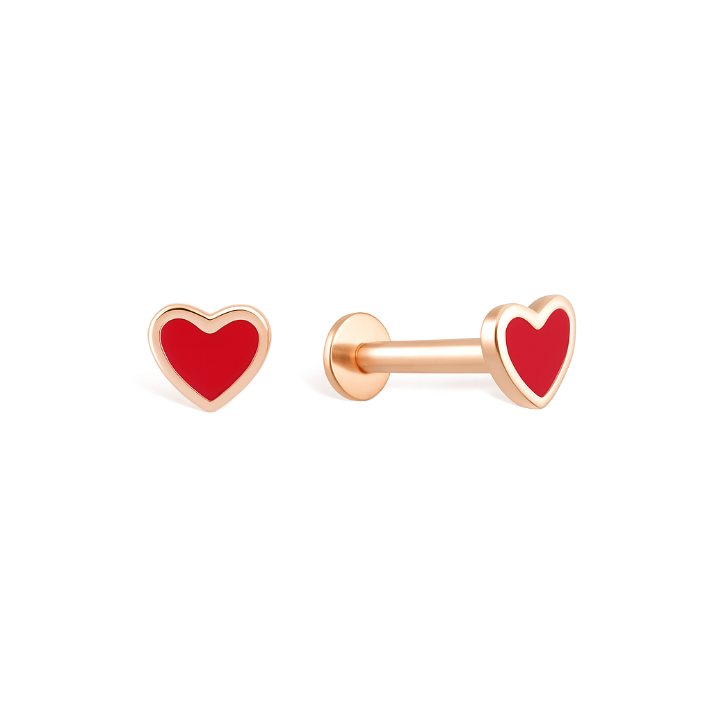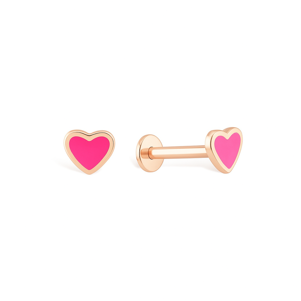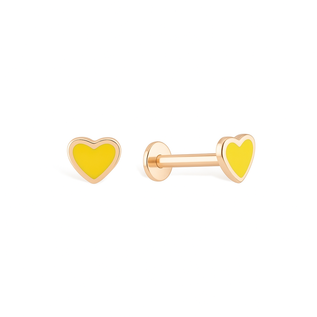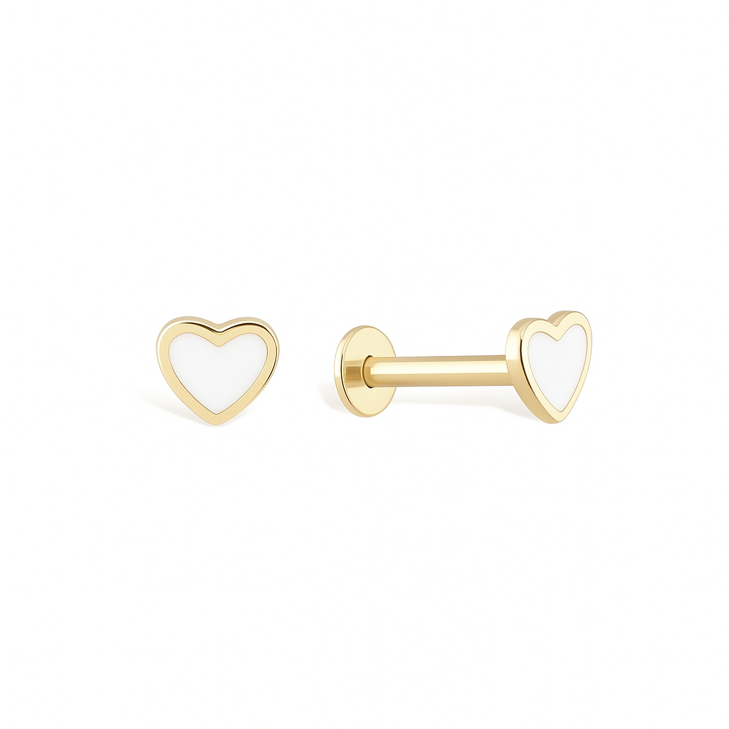 The Enameled Golden Heart Piercing is crafted in solid 14k gold, with a stud length of 6.5mm and 1.25mm thickness. The internally threaded stud and secure back allows for a comfortable and strong piercing. With a variety of enamel colors you can mix and match to create your own signature style.