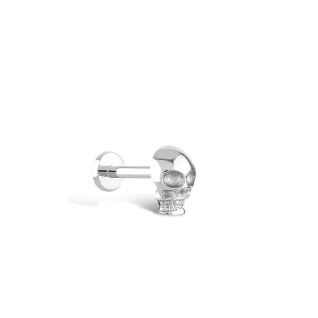 The Golden Skull Piercing is crafted in solid 14k gold, with a stud length of 6.5mm and 1.25mm thickness. The internally threaded stud and secure back allows for a comfortable and strong piercing.