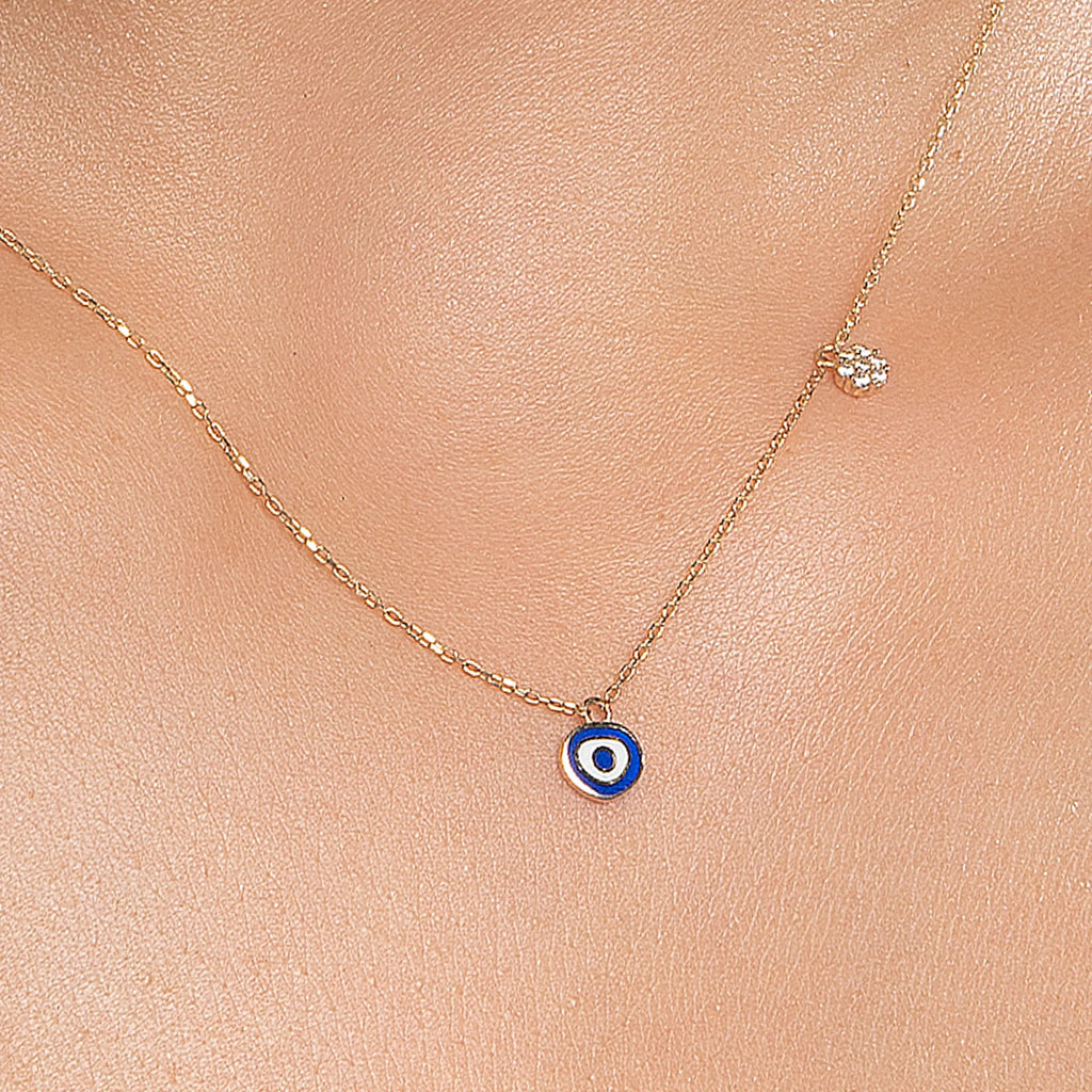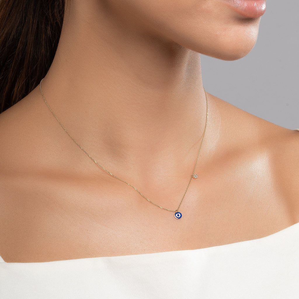 Evil Eye Necklace a mysteriously beautiful piece of jewelry that's sure to turn heads. Made from 14k gold, this pendant features a piece of black enamel that adds a pop of color to any outfit. Perfect for dressing up or down, this necklace is versatile enough to complement a variety of styles.