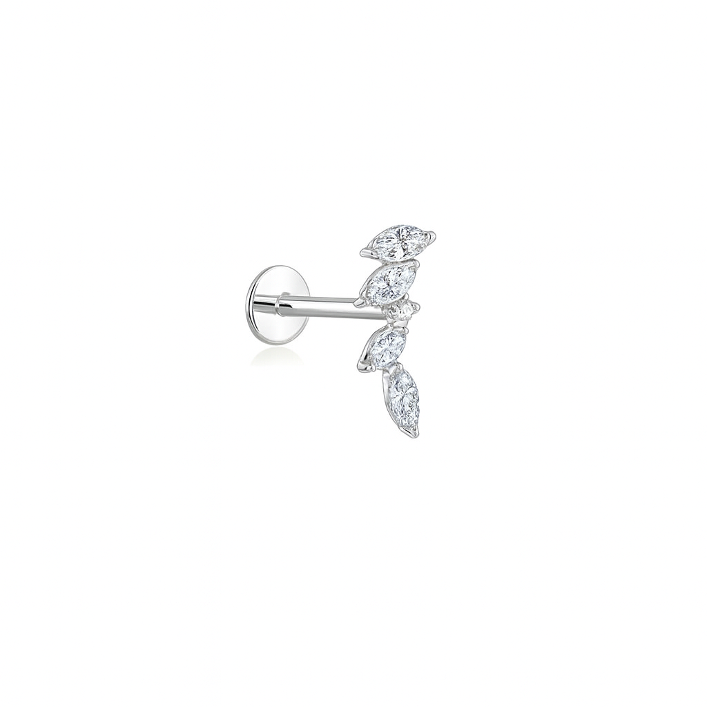 The Line of Marquise Piercing is crafted in solid 14k gold, with a stud length of 6.5mm and 1.2mm thickness. The internally threaded stud and secure back allows for a comfortable and strong piercing. Perfect for a statement piece or everyday wear.