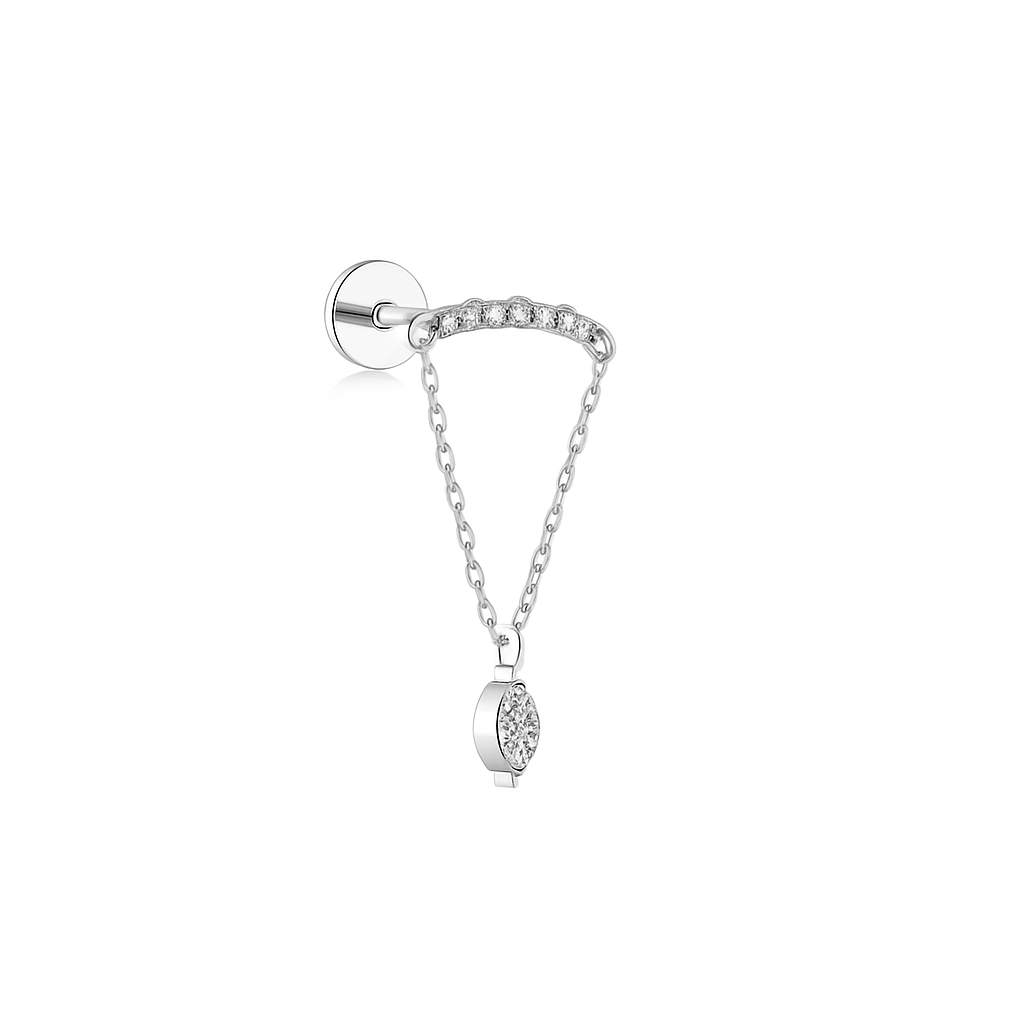The Raining Diamond Earring Hoop is crafted in solid 14k gold, with a stud length of 29 mm and 10 mm thickness. The internally threaded stud and secure back allows for a comfortable and strong piercing. Perfect for a statement piece or everyday wear.